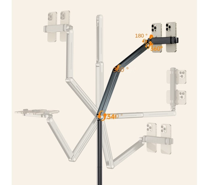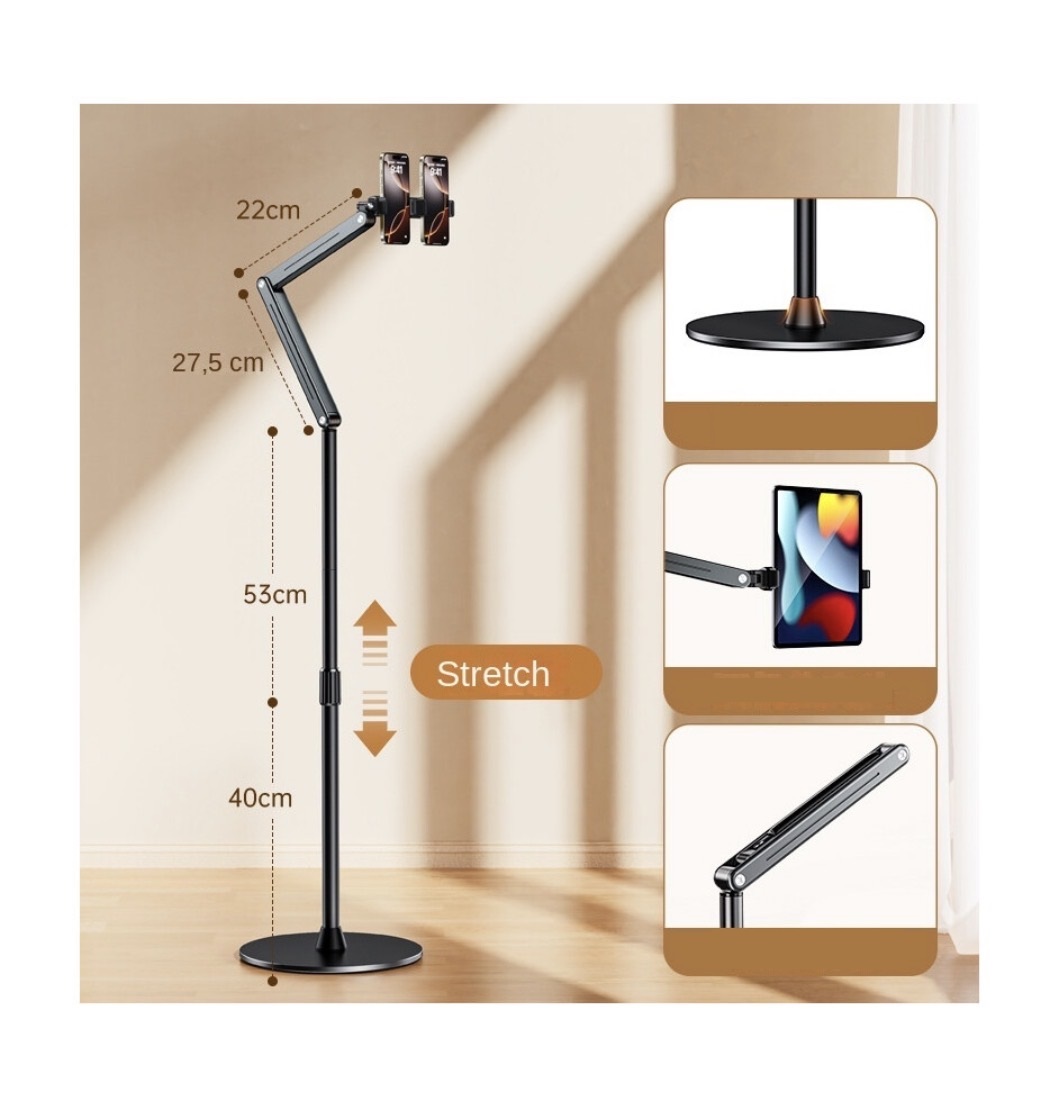 بازوی گیره تلسکوپی برای تلفن‌ها و تبلت‌های 4 تا 13 اینچی مناسب است، گیره سیلیکونی نرم از دستگاه‌ها در برابر خراش محافظت می‌کند، از استفاده با کیف پشتیبانی می‌کند، به طور جهانی برای مطالعه، تماشای ویدیو و پخش زنده مناسب است.