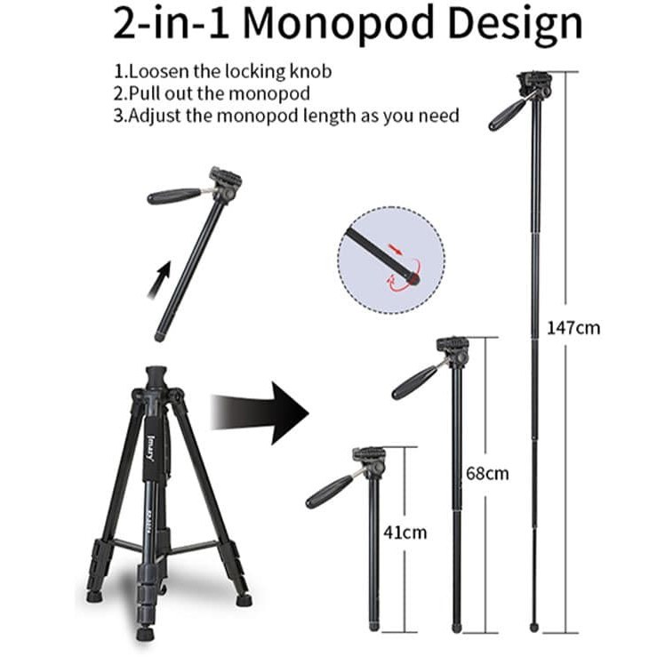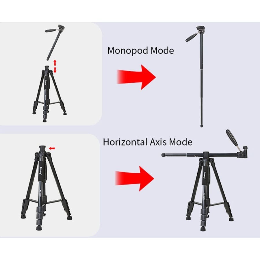 قابلیت تبدیل به مونوپاد: یکی از ویژگیهای بارز و منحصربهفرد سه پایه دوربین جیماری Jmary KP2274، قابلیت تبدیل آن به یک مونوپاد کارآمد و چندمنظوره است. این ویژگی خلاقانه، انعطافپذیری بینظیری را در اختیار کاربران قرار میدهد و امکان ثبت تصاویر و فیلمها از زوایای دشوار و متفاوت را فراهم میکند. چه برای عکاسی از ارتفاع، چه برای فیلمبرداری در فضاهای محدود یا حتی برای خلق کارهای هنری خلاقانه، مونوپاد این سه پایه، ابزاری قدرتمند و کاربردی خواهد بود.