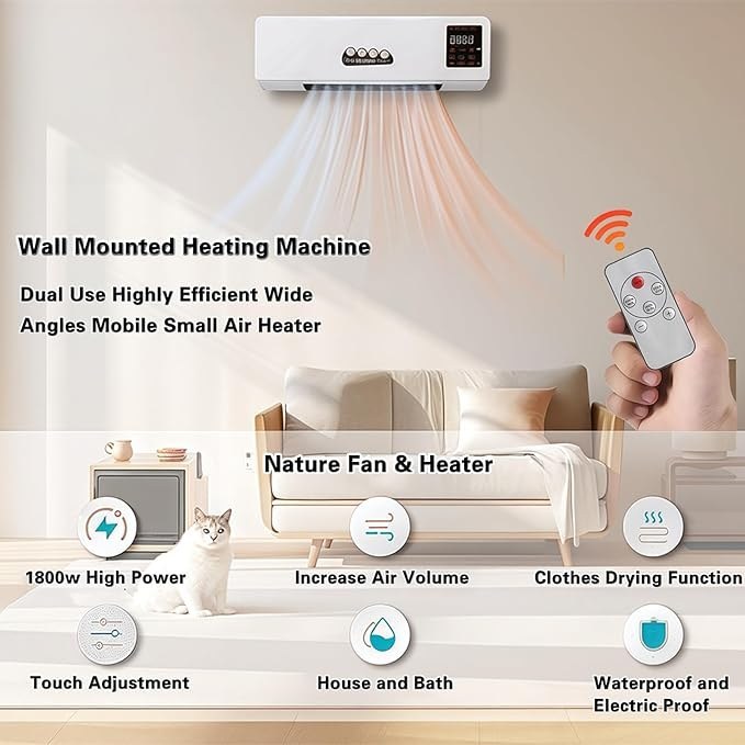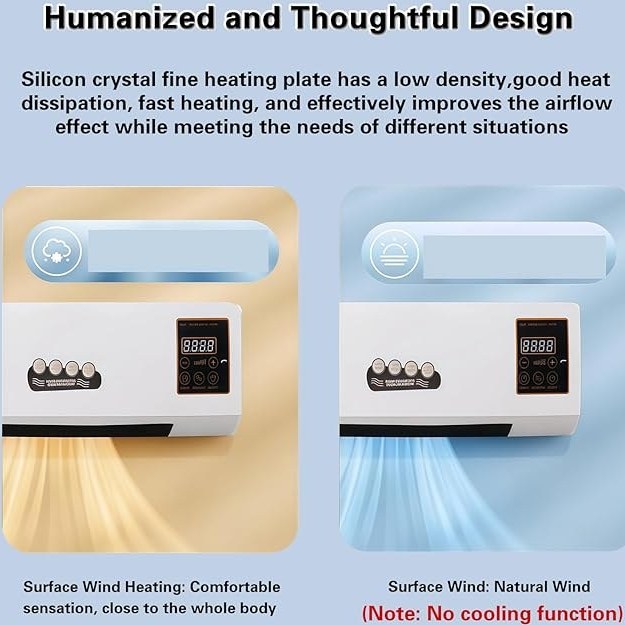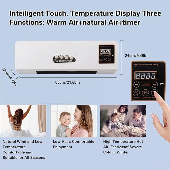 طراحی دیواری: ترکیب بخاری و کولر گازی برقی برای نصب آسان روی دیوار طراحی شده است و به شما امکان میدهد در فضای کف صرفهجویی کنید و اتاق خود را مرتب نگه دارید.