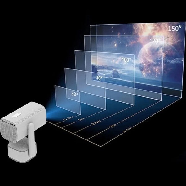 ویدیو پروژکتور هوشمند Pan-Tilt مدل K2 میتواند تصویری با اندازه ۳۳ تا ۱۵۰ اینچ را با وضوح HD نمایش دهد. فاصلهی توصیهشده از پرده بین ۰.۵ تا ۴.۵ متر است، که امکان تنظیم اندازه تصویر را بر اساس محیط فراهم میکند.