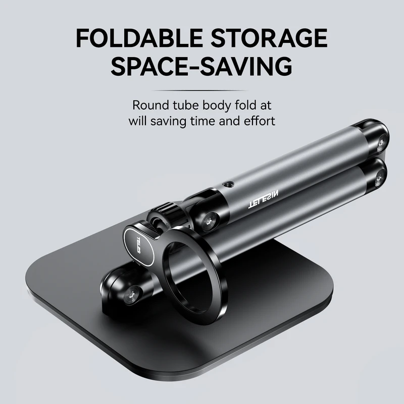 پایه توی حالت جمعشده سبک و جمعوجوره، و وقتی باز میکنی، بازوها به تو امکان تنظیم آزاد در زوایا مختلف رو میدن.