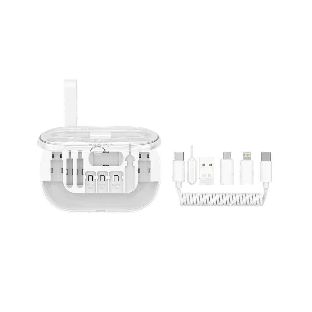 علاوه بر مدیریت کابل، SyncBox دارای جا مخصوص کارتهای SIM برای نگهداری دو Nano SIM و یک Micro SIM است، بهعلاوه ابزار خارجکننده SIM نیز در آن گنجانده شده تا جابهجایی سیمکارتها آسان شود — ویژگیای که مخصوص افراد پرتردد، مسافران و کسانی که چند گوشی با سیمکارت مختلف دارند بسیار مفید است.