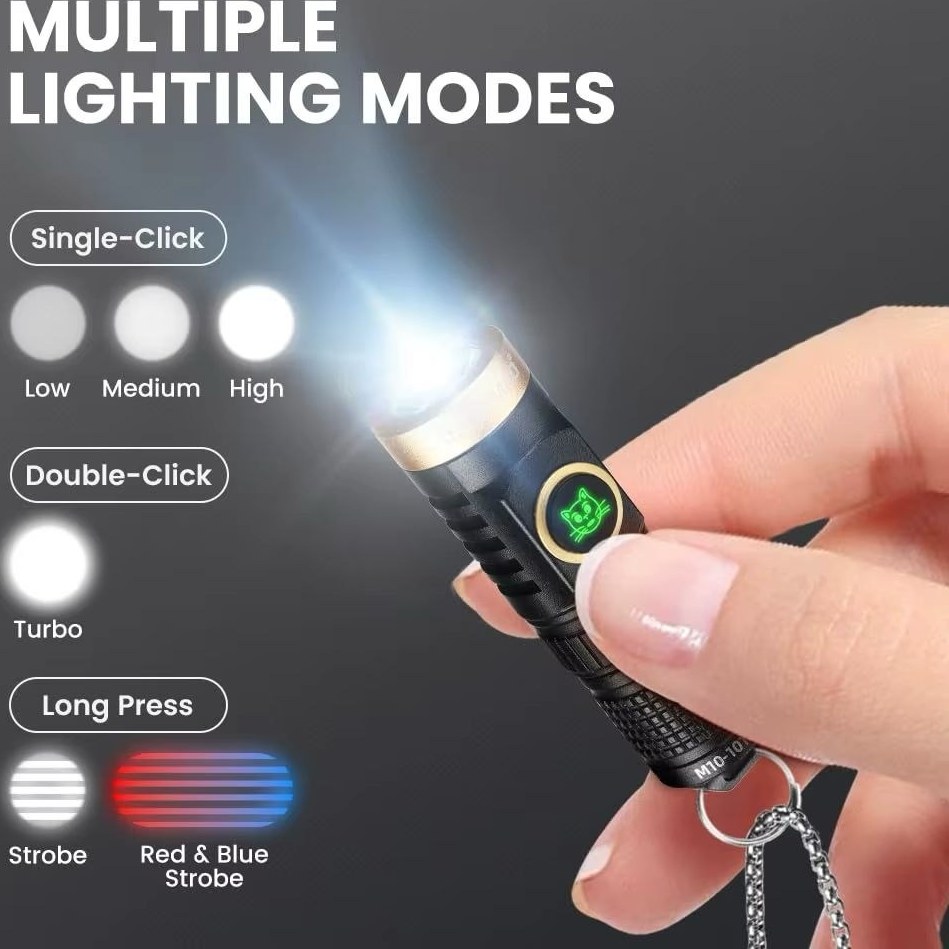 این چراغ قوه زنجیر کلید از آلومینیوم هواپیما درجه بالا، جفت شده با اپتیک TIR، بدنه با آنودایز سخت ضد خش نوع III، رزوه های عالی، مقاومت در برابر ضربه 1.5 متر، ضد آب IPX-8، چاه ساخته شده است. حلقه O مهر و موم شده تمام شرایط شدید، حتی 6.56 فوت شناور در زیر آب را کنار بگذارید. Yemao YM-M10 فقط 0.51 اونس وزن دارد، بسیار مناسب برای حمل جیبی است، به راحتی به حلقه کلید شما متصل می شود و به شما کمک می کند در تاریکی درب یا کلید خود را پیدا کنید.